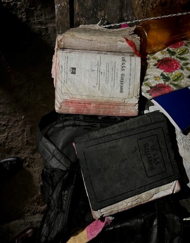 We bezochten een heel arm gezinnetje. De man was altijd visser geweest maar tijdens zijn werk was zijn hand eraf gebeten door een krokodil. Nu probeerde hij te werken in de bouw, maar met een zeer laag loon. Ze hadden 2 kinderen en die komen ieder week trouw naar de Bijbel klas die in Nagapuram gehouden wordt door Dominee Theiventhiran. Door gebrek aan geld had de moeder had al 2 dagen geen eten kunnen koken. We gaan dit gezing ondersteunen doormiddel van een voedselpakket. Ook hebben we hier een kinderbijbel gegeven.